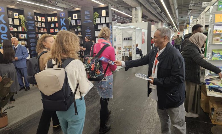 وأعضاء المؤسسة بألمانيا الحاج محمد الامين توزيع وشرح كتب المفكر العربي الاستاذ على محمد الشرفاء للزائرين والتفاعل مع الزوار