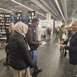 وأعضاء المؤسسة بألمانيا الحاج محمد الامين توزيع وشرح كتب المفكر العربي الاستاذ على محمد الشرفاء للزائرين والتفاعل مع الزوار