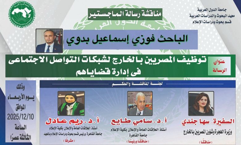 هذا الإنجاز الأكاديمي يعكس جهدًا عميقًا ورؤية واعية لطبيعة التحولات الرقمية ودور المصريين بالخارج في صناعة الوعي وبناء الجسور بين الوطن وأبنائه في المهجر. وجاءت المناقشة الرفيعة التي شاركت فيها شخصيات وطنية بارزة لتؤكد أهمية العمل وتميز الباحث.