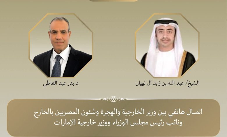 اتصال هاتفي بين وزير الخارجية ونائب رئيس مجلس الوزراء ووزير خارجية دولة الإمارات العربية المتحدة الشقيقة