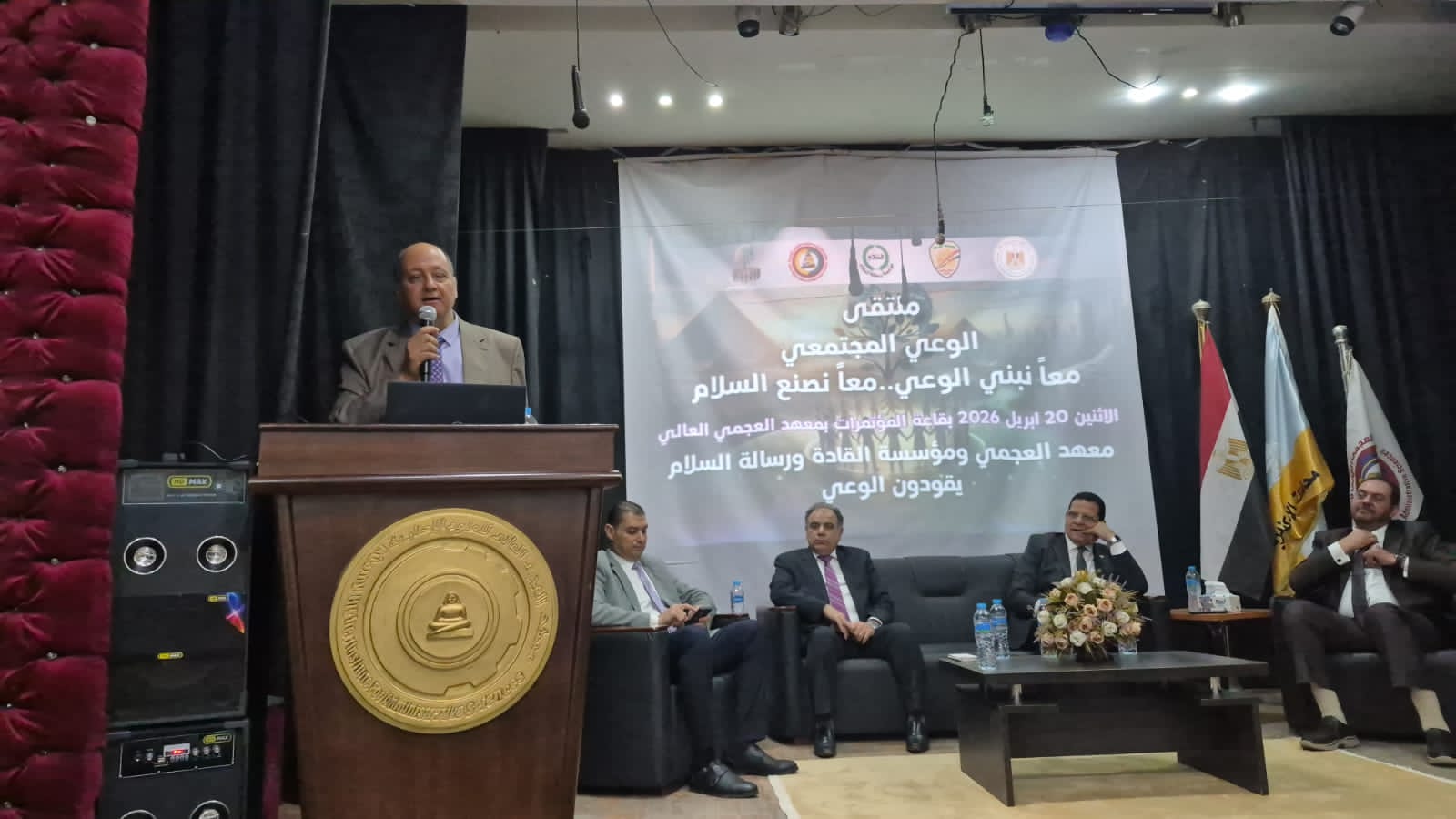 جاء ذلك خلال فعاليات ” ملتقى الوعي المجتمعي ” والذي تشارك فيه مؤسسة رسالة السلام العالمية والمنعقد بمقر معهد العجمي العالي للعلوم الإدارية، بالتعاون مع مؤسسة القادة للعلوم الإدارية والتنمية، وذلك في إطار الجهود الرامية إلى تعزيز الوعي المجتمعي ودعم ركائز الاستقرار والسلام .