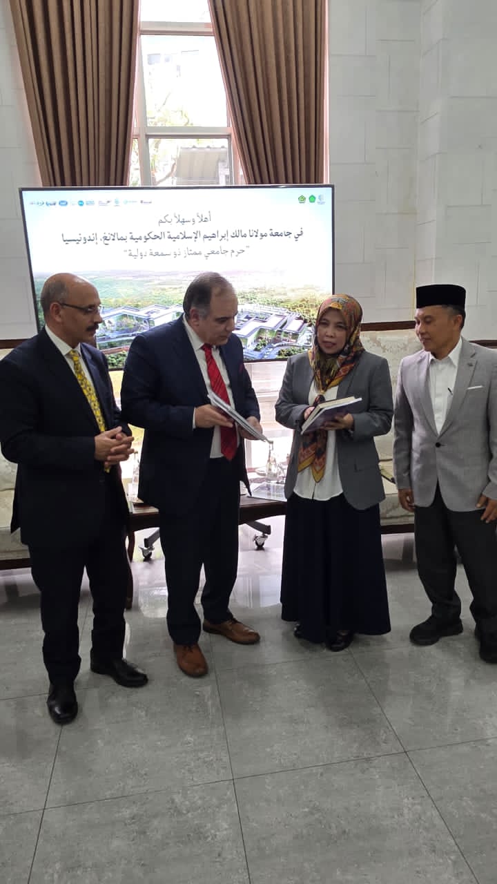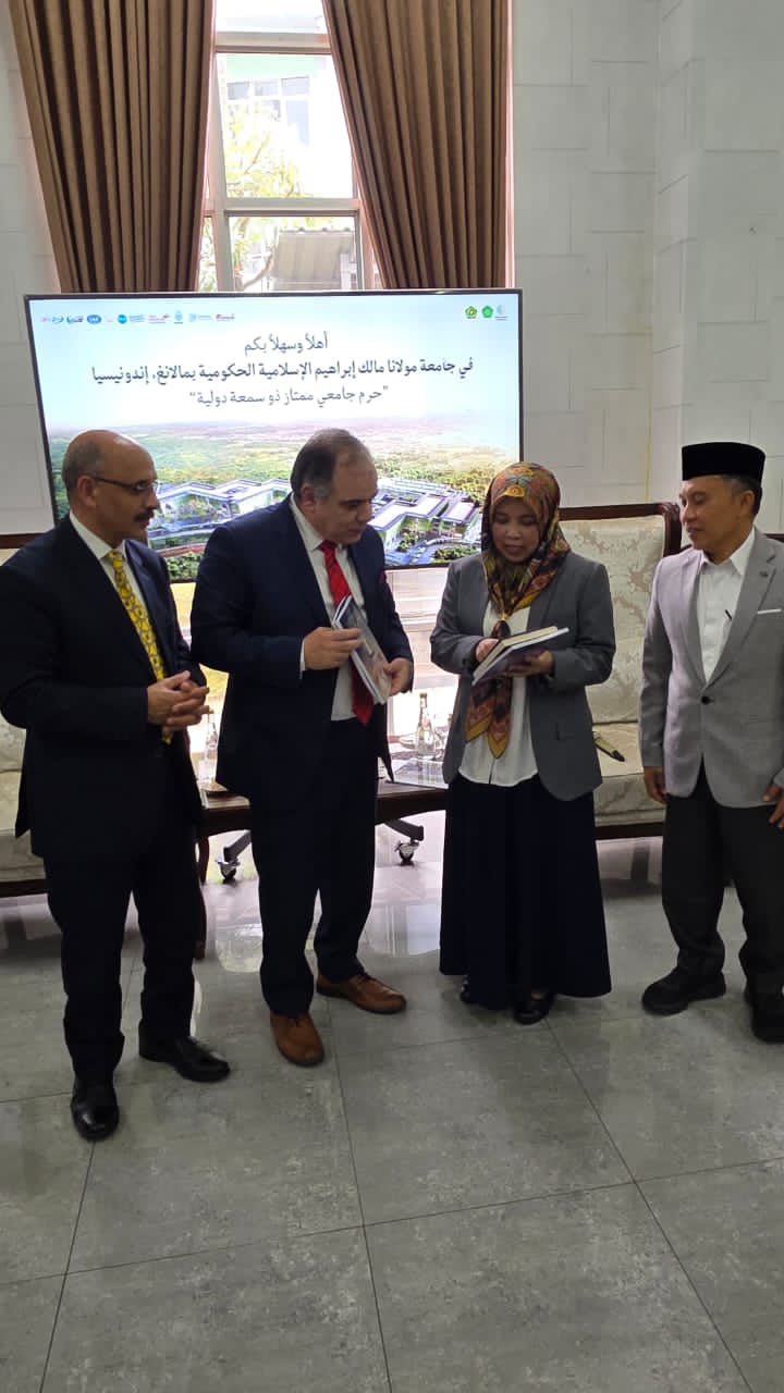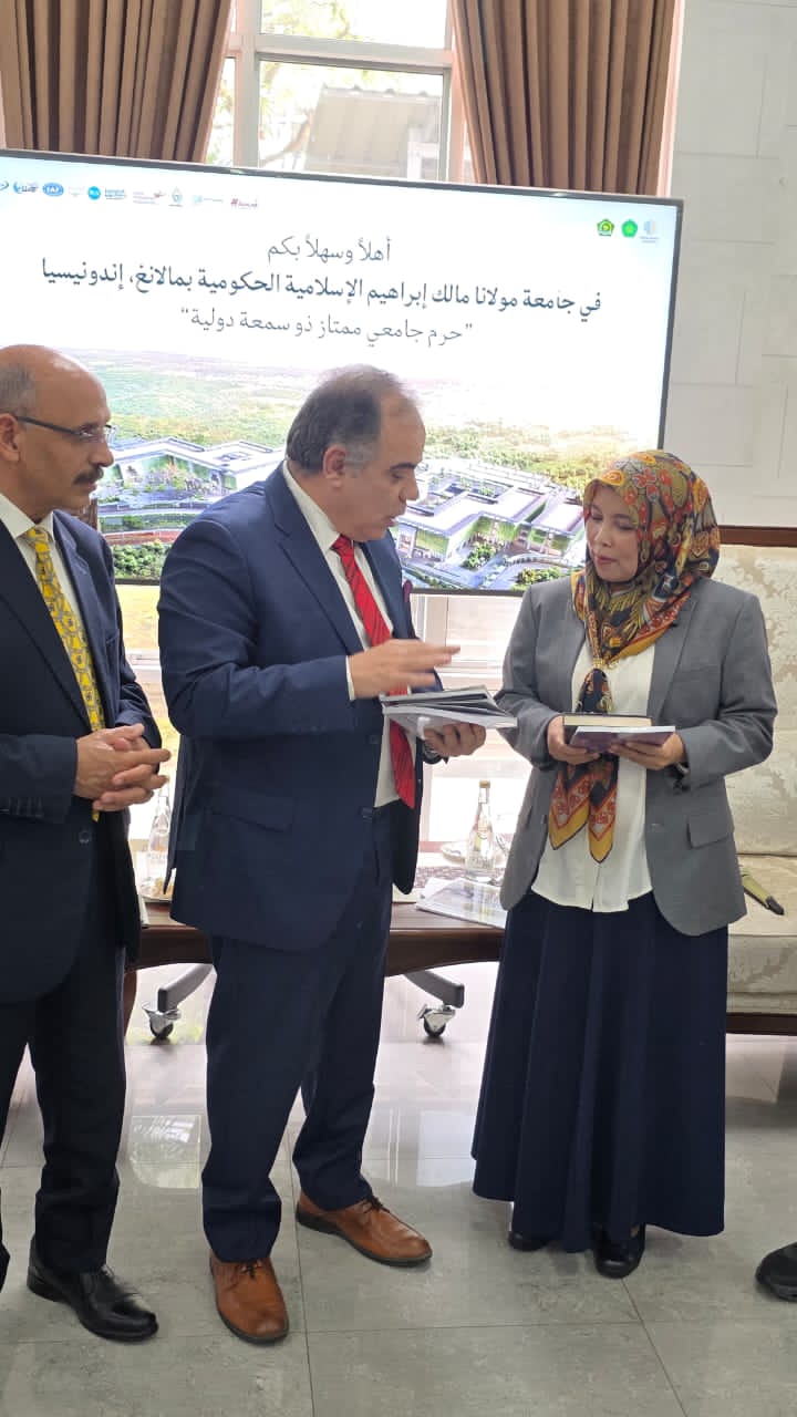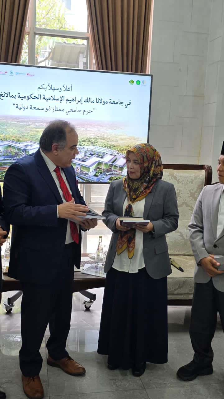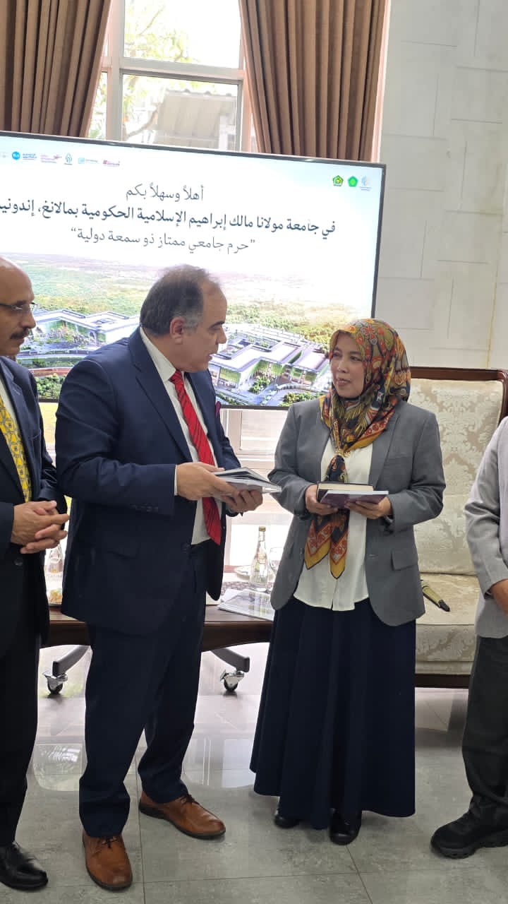 عقدت جامعة مولانا مالك إبراهيم الإسلامية الحكومية جلسة تعارف موسعة مع وفد مؤسسة رسالة السلام العالمية، ضمت رئيسة الجامعة ووكلائها وأساتذتها وجرى خلالها بحث آفاق التعاون والشراكة بين الجانبين في المجالات العلمية والفكرية، خاصة ما يتعلق بنشر قيم السلام وتعزيز الدراسات القرآنية وذلك في إطار زيارة رسمية وضمن توجهات المشروع الفكري المرتبط برؤية علي الشرفاء الحمادي .