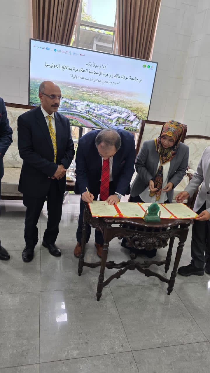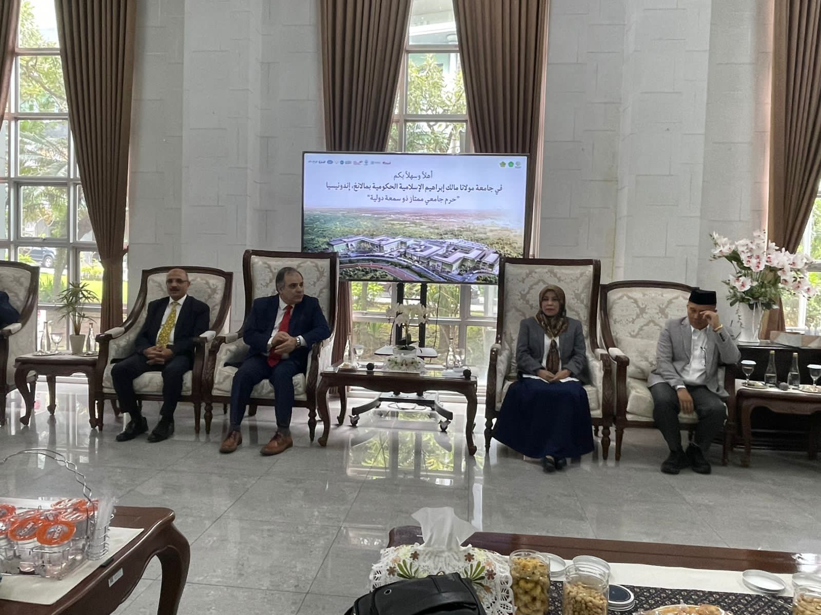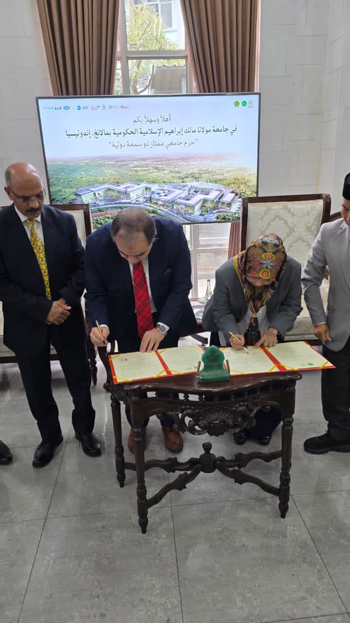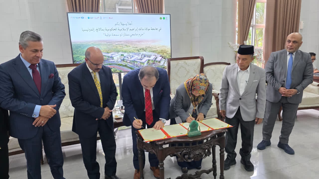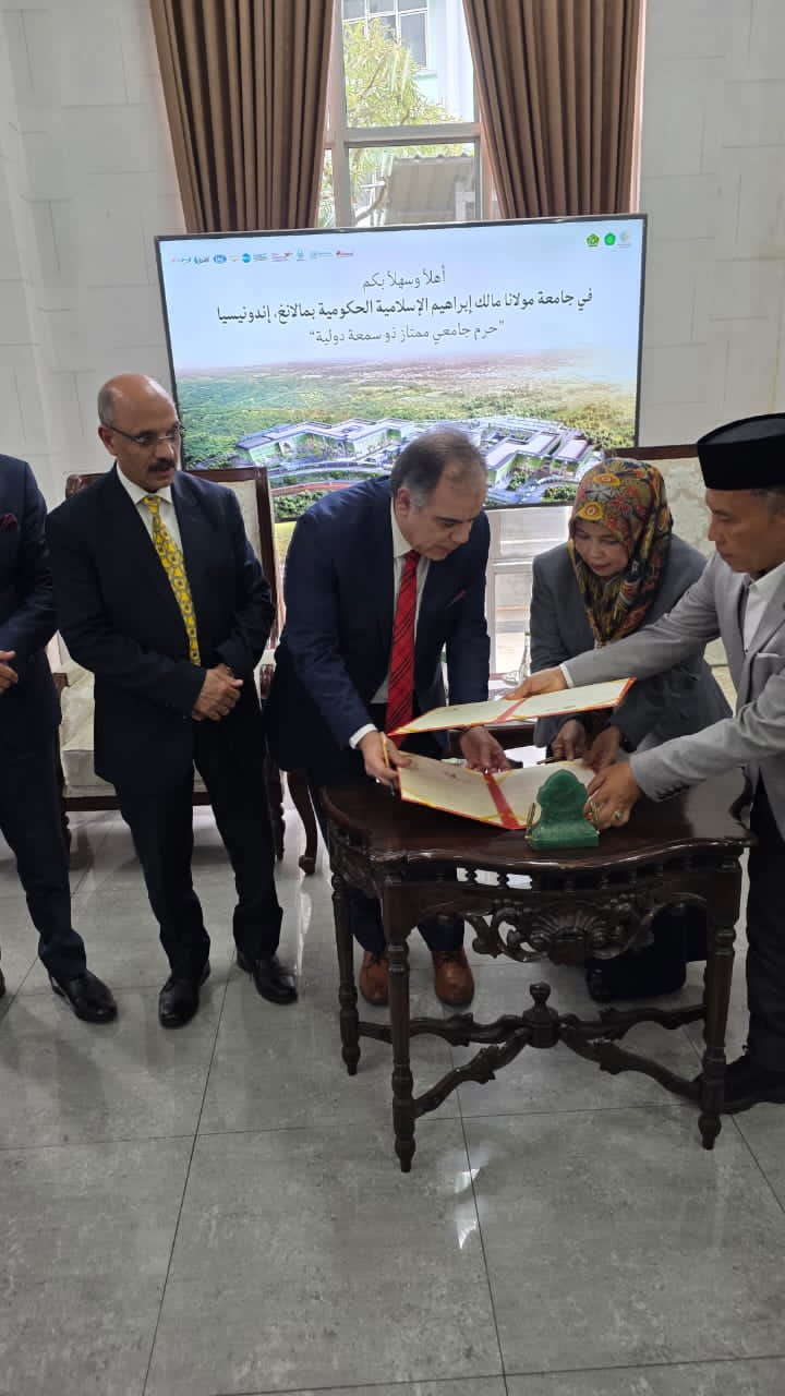 عقدت جامعة مولانا مالك إبراهيم الإسلامية الحكومية جلسة تعارف موسعة مع وفد مؤسسة رسالة السلام العالمية، ضمت رئيسة الجامعة ووكلائها وأساتذتها وجرى خلالها بحث آفاق التعاون والشراكة بين الجانبين في المجالات العلمية والفكرية، خاصة ما يتعلق بنشر قيم السلام وتعزيز الدراسات القرآنية وذلك في إطار زيارة رسمية وضمن توجهات المشروع الفكري المرتبط برؤية علي الشرفاء الحمادي .