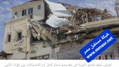 تعرض سقف فندق الحياة في مقديشو لدمار كامل إثر الاشتباكات بين قوات الأمن والشباب. ا ف ب – فرح عبدي ورسامه …